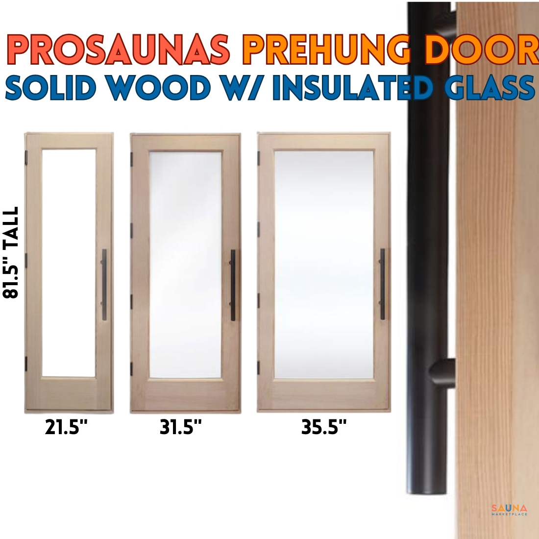 Price range: $1,282.20 through $1,540.20Handcrafted in Minnesota from solid Douglas Fir with a natural Hemlock jamb, this prehung PROSAUNAS sauna door features insulated dual‑pane tempered glass and self‑closing hinges to keep heat in while flooding your sauna with natural light. Choose from 24″, 30″, or ADA‑width 36″ doors, each pre‑assembled in a durable frame for speedy, precise installation.