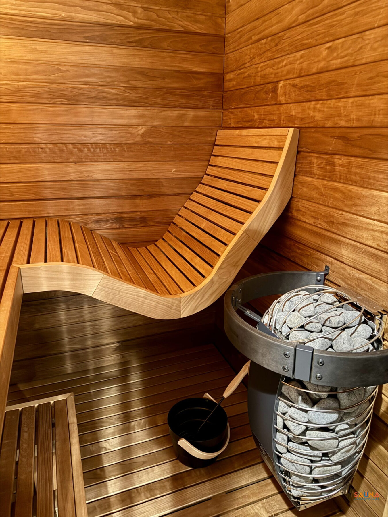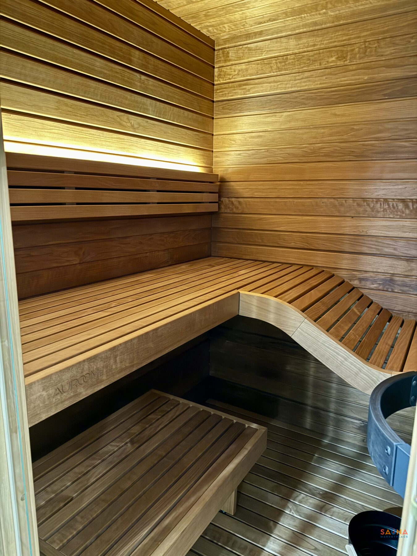 Auroom Baia is an efficient, premium indoor sauna that provides the bather with three different seating positions.
