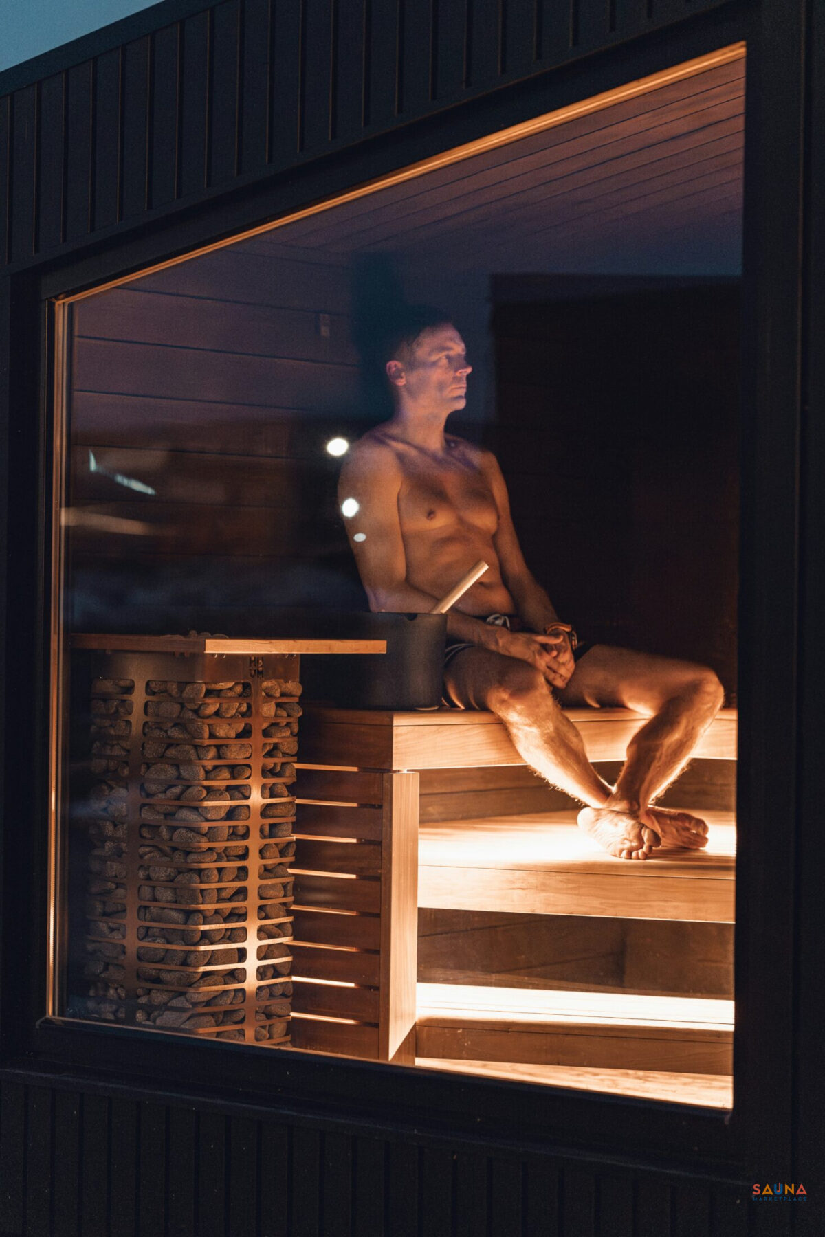The Terra’s sleek black exterior cladding design creates an eye-catching color contrast with the natural interior finish. Your chosen exterior is coupled with an interior design that combines waxed dark-gray alder walls with the option of either natural alder, natural aspen, or thermo-aspen benches to best suit your preferences.