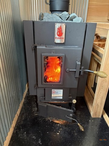 – Authentic wood heat: Kuuma wood‑fired sauna stove with stone basket (rocks included). Heats up in about 1‑2 hours.