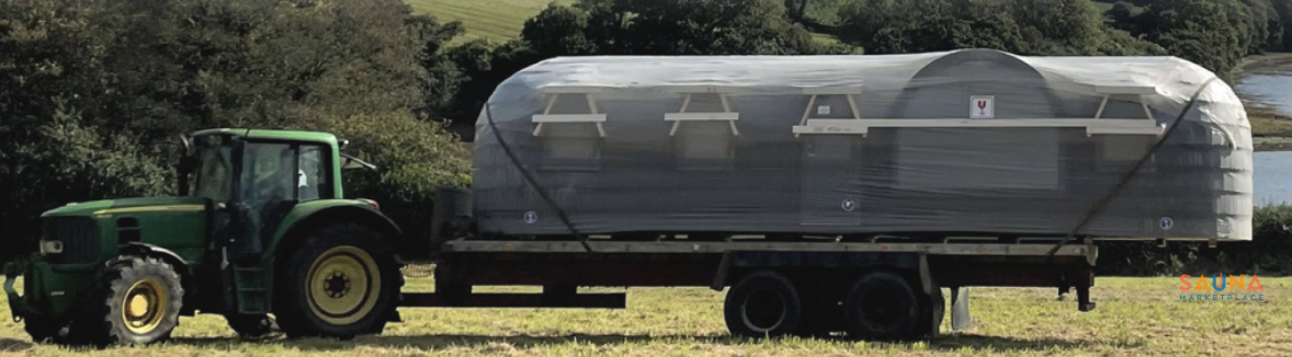 The Panoramic arrives on a flatbed trailer and requires a crane (recommended), telehandler, or substantial tractor capable of moving 5,808 lbs. Between Iglucraft and Sauna Marketplace, we've seen it all and are looking forward to making delivery day as smooth as possible.