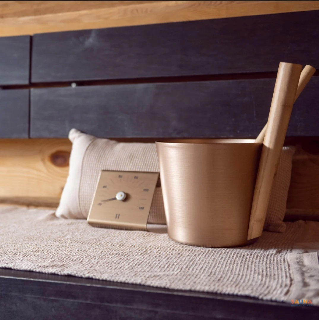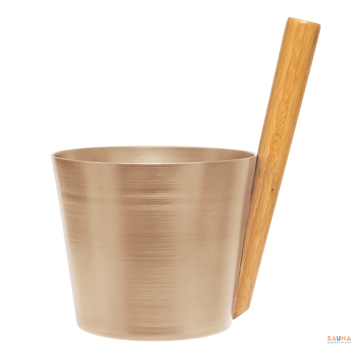 Timeless design combined with user-friendly shapes creates a must-have sauna bucket. The metal parts are color-anodized aluminum, with a straight handle of heat-treated bamboo.